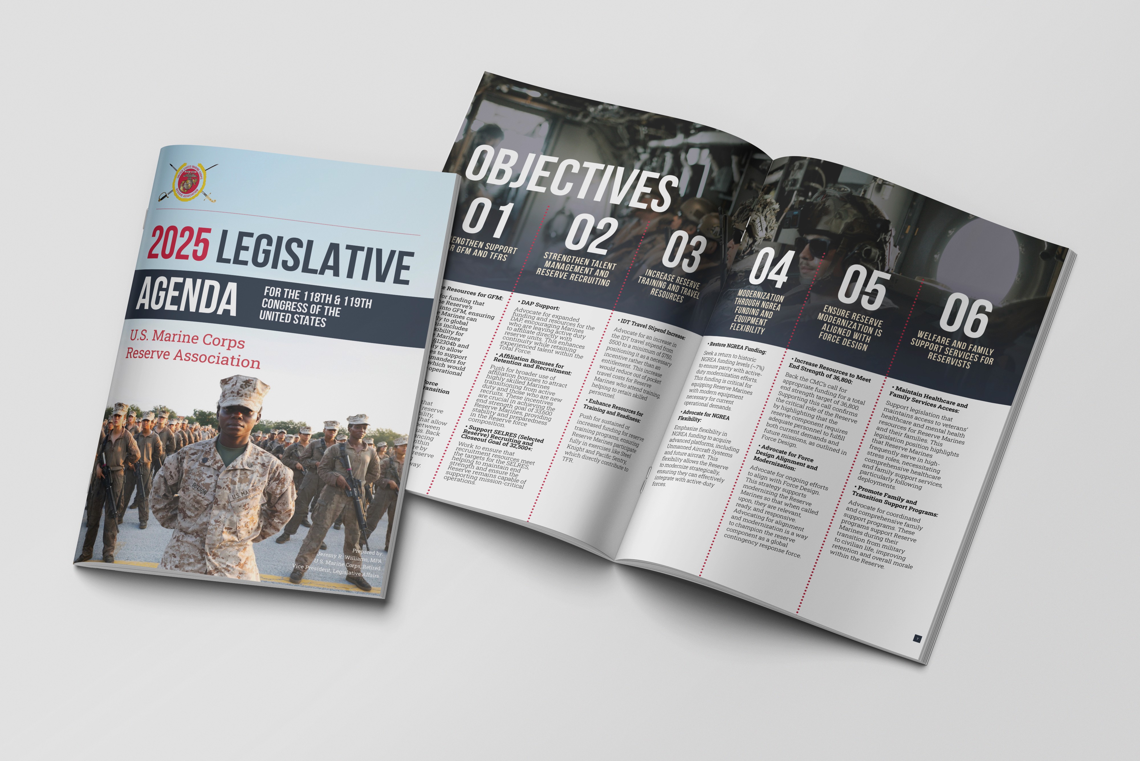 We Designed an intuitive and engaging legislative agendas, brochures, tri-folds and other branded media for the Marine Corps Reserve Association